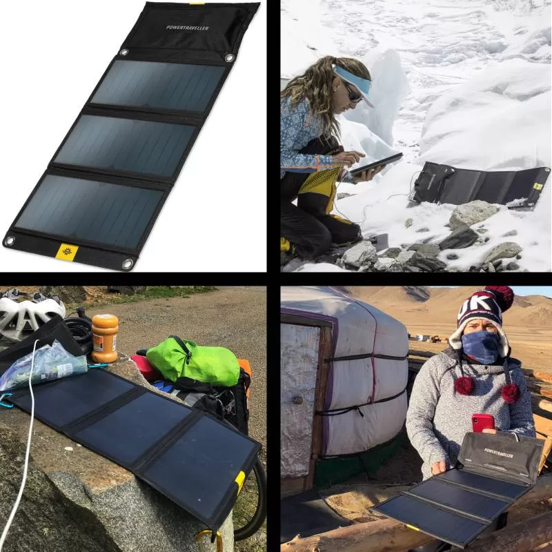 L’énergie solaire vous accompagne partout. C’est simple : le panneau solaire Falcon 21 de la marque Powertraveller peut alimenter et recharger quasiment tous vos appareils électroniques portables. Cela va du Smartphone à la tablette et de l’appareil photo Reflex à l’ordinateur portable en passant par le GPS ou la caméra GoPro. En fait, le panneau solaire Powertraveller Falcon 21 est compatible avec tous les appareils d’une puissance inférieure ou égale à 40 W et d’une tension inférieure ou égale à 20 V, d’où une extrême polyvalence. Autres grands avantages : c’est un panneau solaire pliable. Il a donc un format particulièrement adapté au monde de la randonnée, au monde du trekking et au monde du voyage. En outre, il bénéficie d’une grande surface de cellules monocristallines (SunPower) de dernière génération et à haut rendement, d’où ses hautes performances : 35% de puissance de plus en comparaison avec les cellules classiques. Sa solidité et sa résistance à l’eau (norme d’étanchéité : IPX4) en font un panneau solaire portable apte à de nombreuses activités Outdoor.